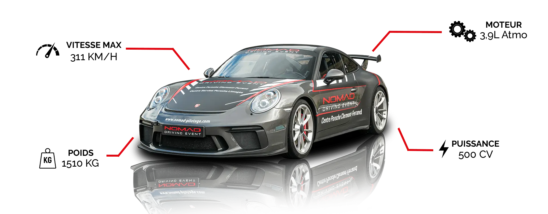 Nos stages de pilotage en Porsche sur le circuit de Charade et de Ladoux sont conçus pour transmettre notre passion du sport automobile à nos clients. Nos pilotes-instructeurs vous conseillent et vous accompagnent afin de perfectionner votre pilotage et prendre du plaisir en piste au volant de toutes nos sportives (Lotus Elise Cup, Porsche Cayman T 718, Alpine A110S, BMW M2 Compétition, Porsche 911 991, Porsche GT3, Porsche GT4 RS, Ferrari 488). Avec plus de 1100 avis sur Google et une note de 4,9/5, nos clients recommandent nos stages de pilotage.